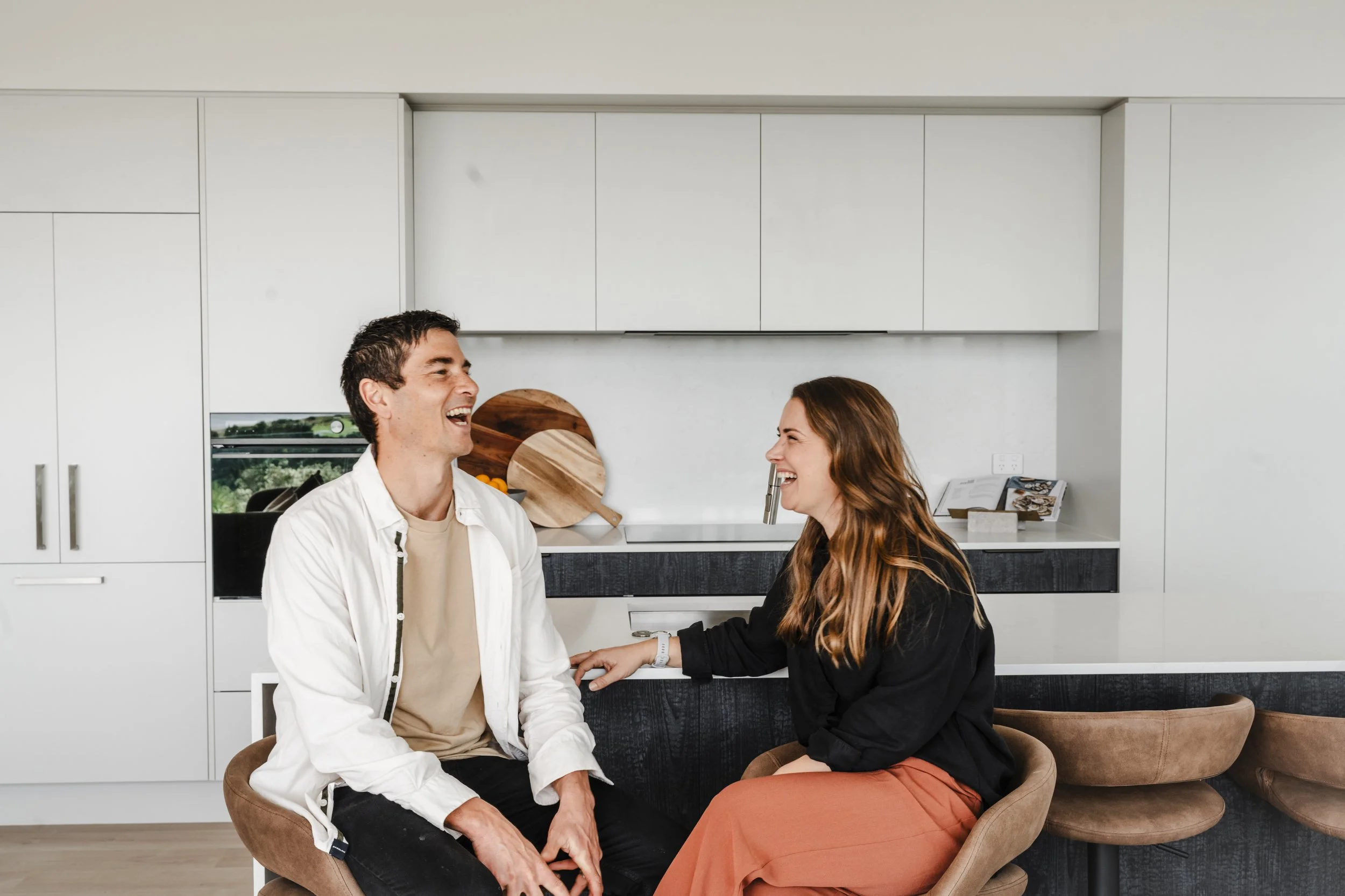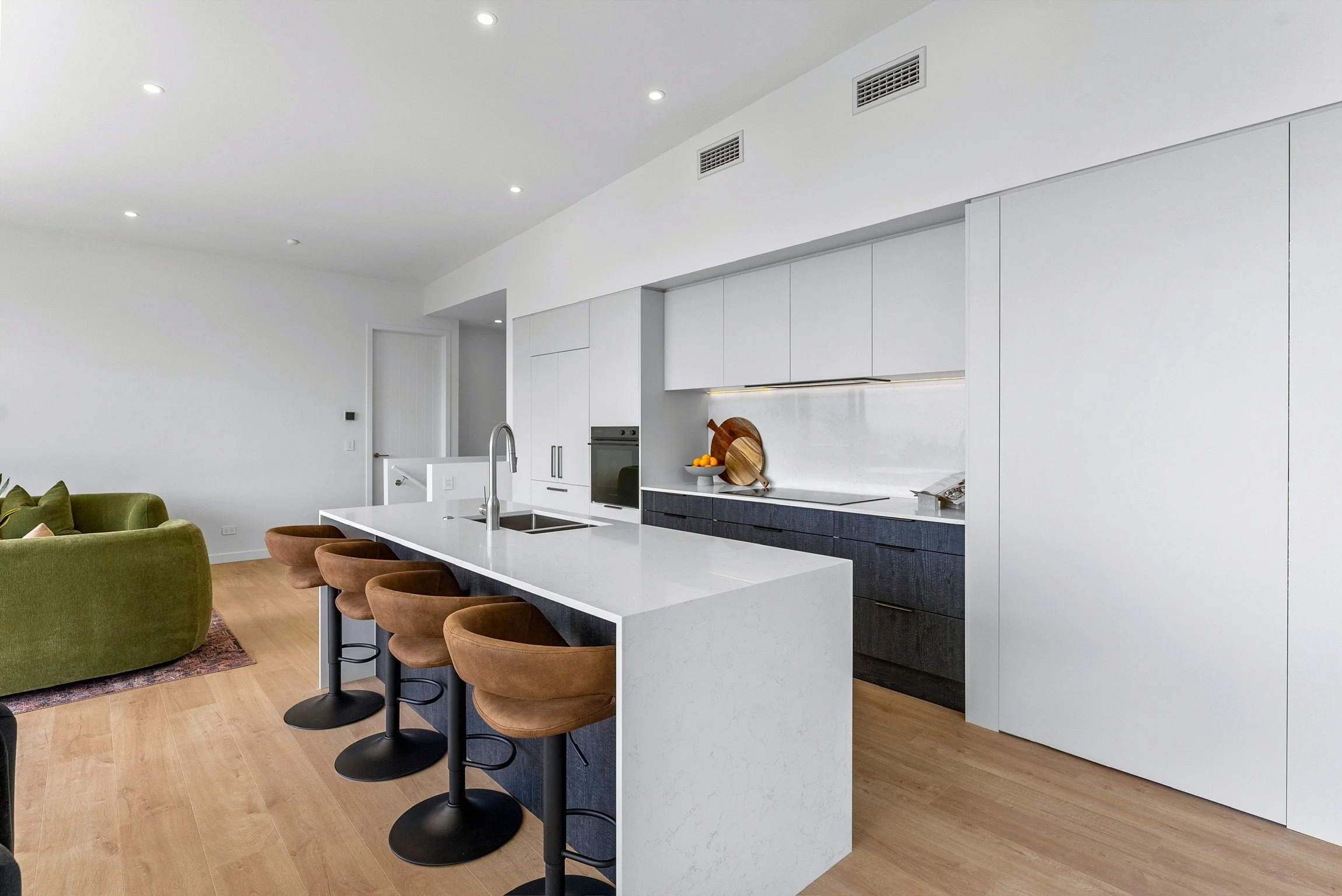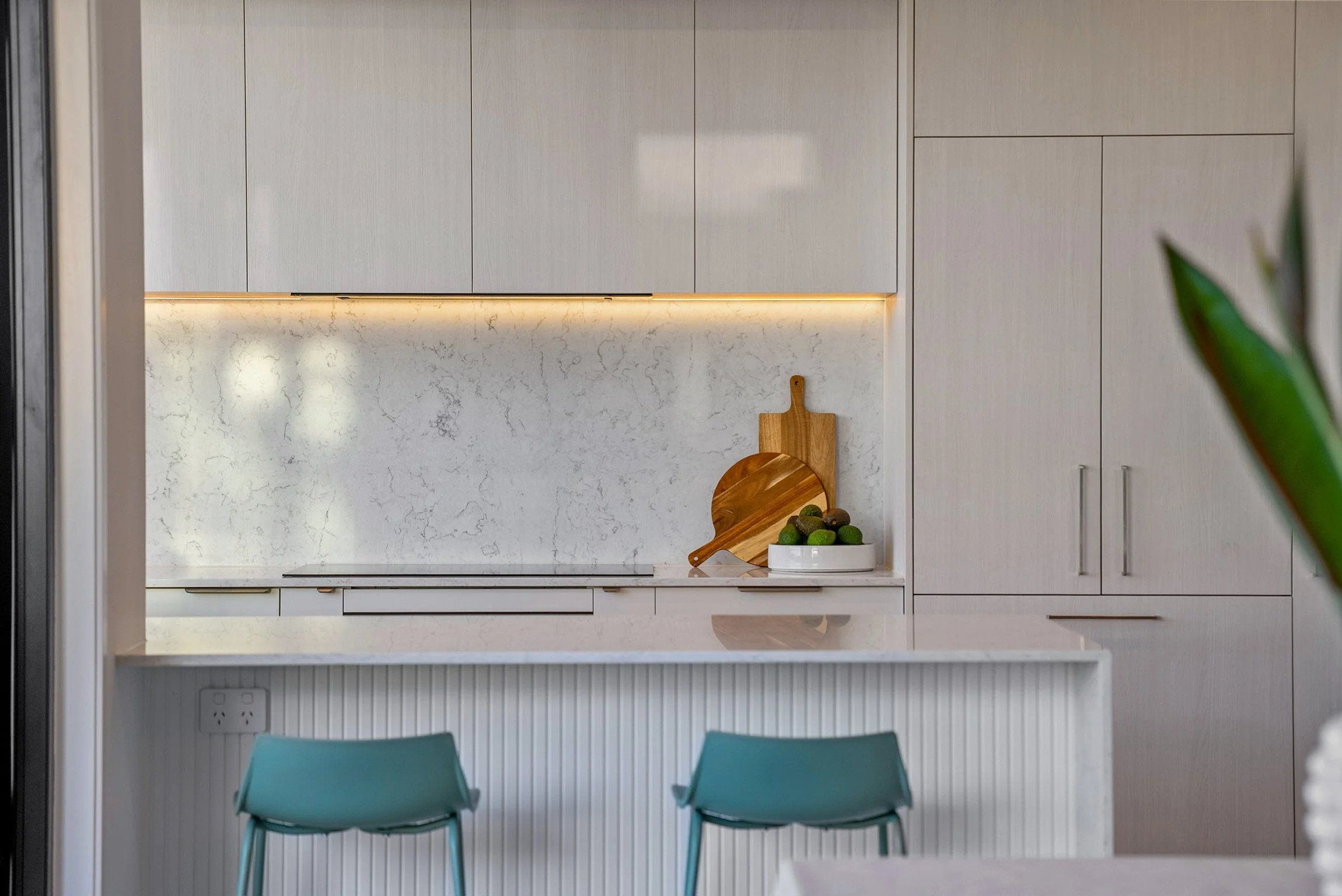 Benchtops: 20mm Zealstone Aspen White (kitchen), 20mm Zealstone Glacier White (scullery)